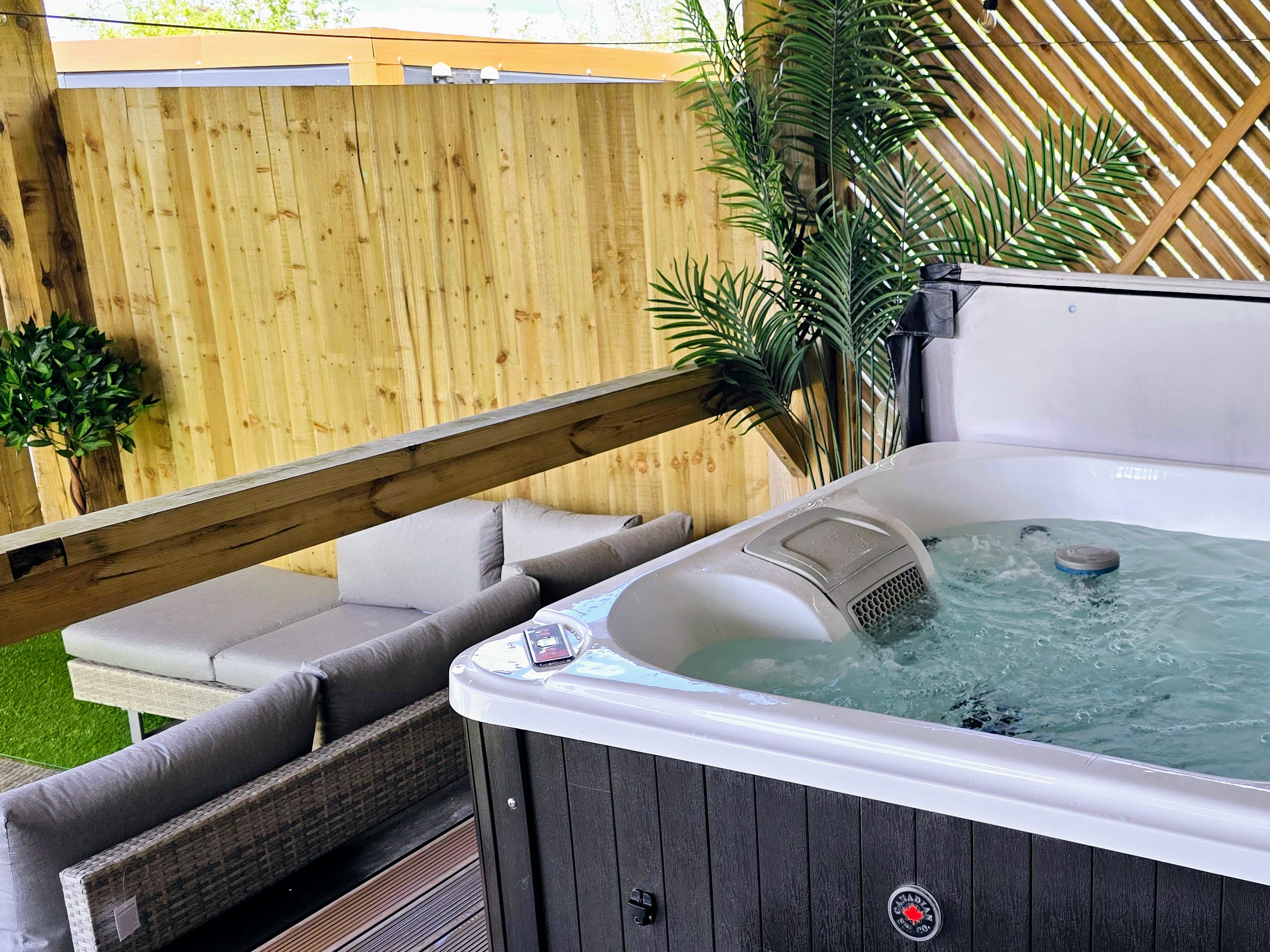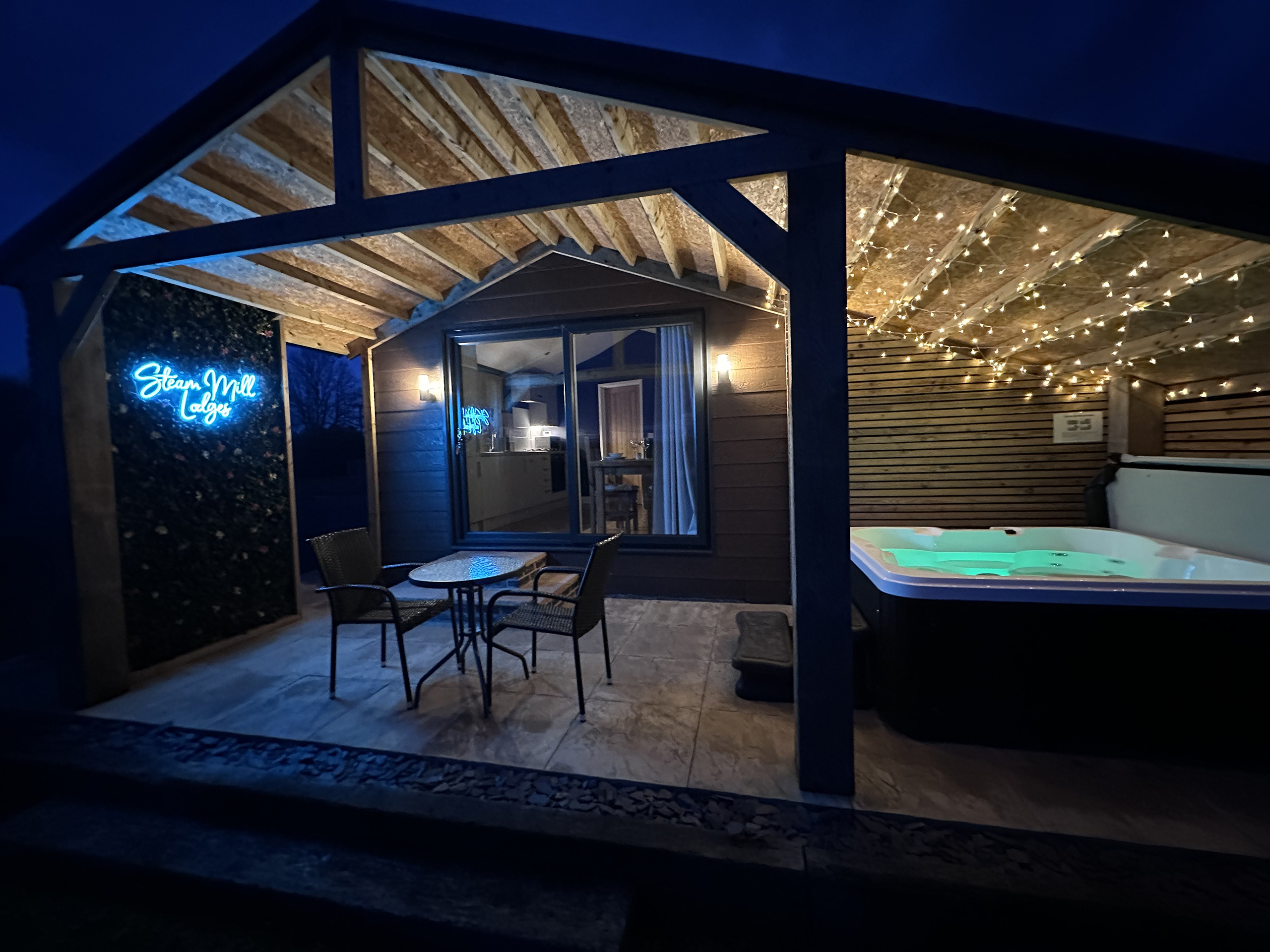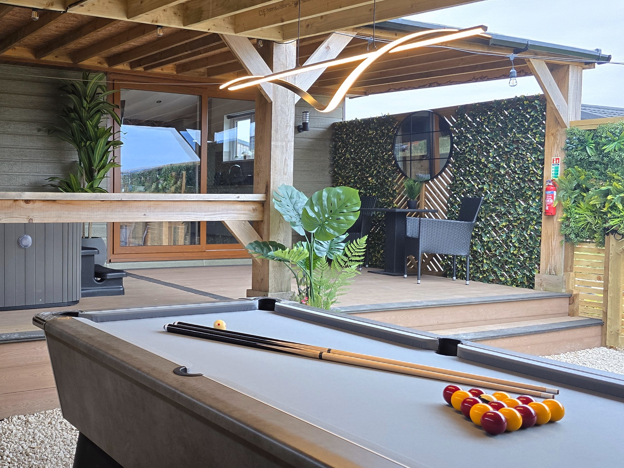 Enjoy the outdoor space with the fully covered hot tub and decking to take in the views in all weathers.