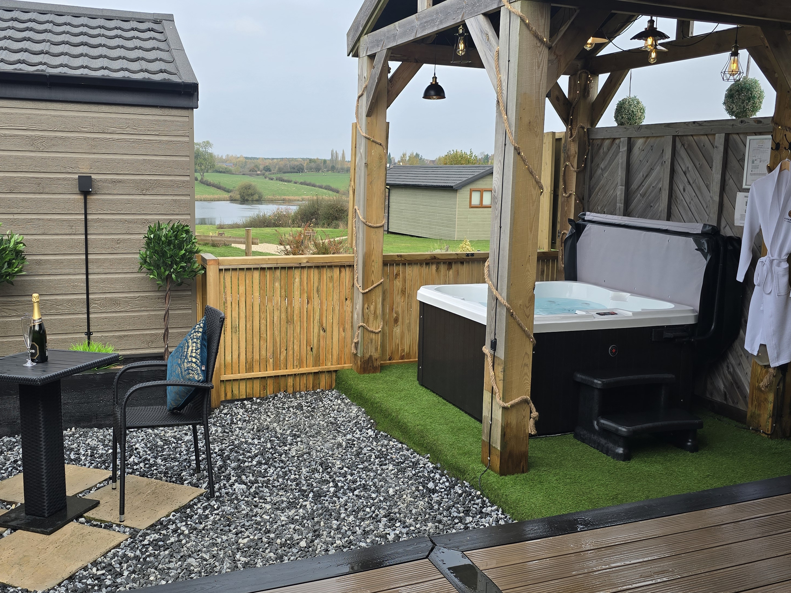 Enjoy stunning lake views from your own private hot tub, and take time to relax and unwind in the quiet and tranquil surroundings.