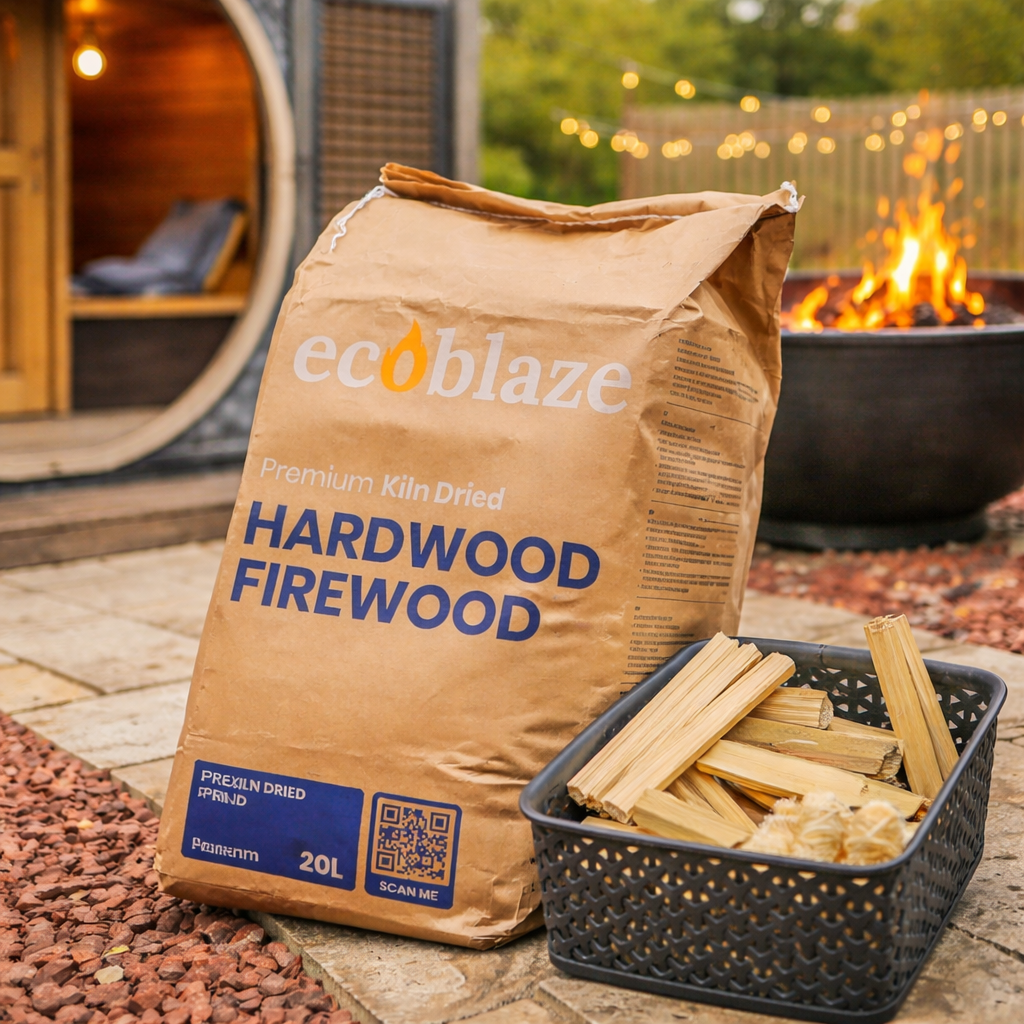 Kiln-dried logs suitable for safe use in saunas, pizza oven.