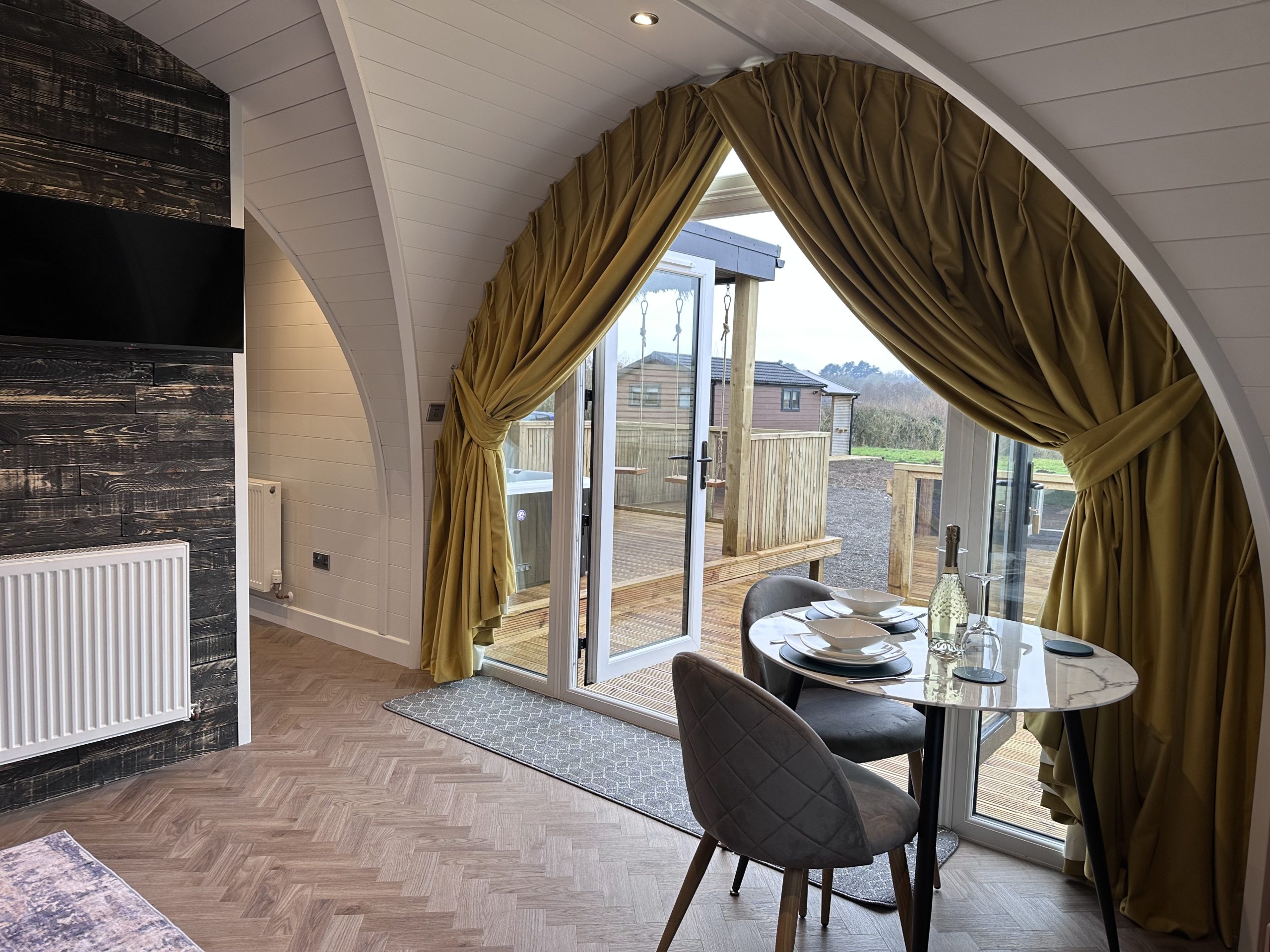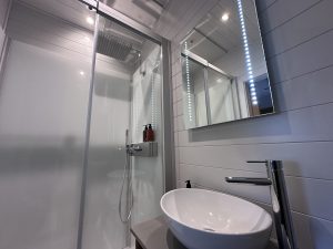 Inside this beautifully heated one-bedroom lodge, you’ll find a fully equipped modern kitchen featuring an oven, electric hob, integrated fridge, dishwasher, microwave, toaster, and kettle โ perfect for preparing meals in comfort.