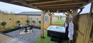 Hot tubs are drained, cleaned, refilled and heated prior to every stay.